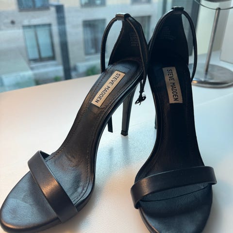 Steve Madden Højhælet sko størrelse 39 sort med guldkæde