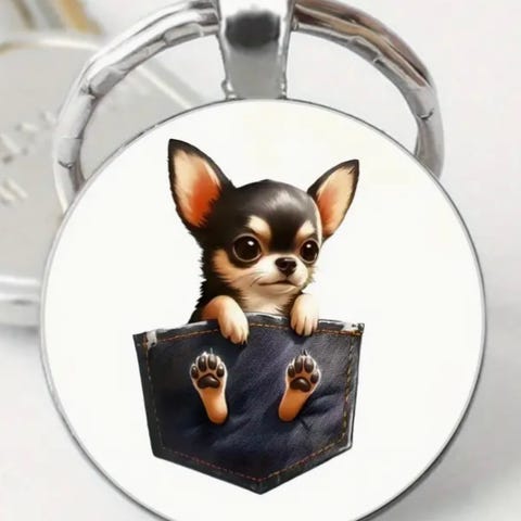 Sød nøglering med et nuser motiv med en Yorkshire Terrier hvalp. Motivet er “bag (plexi)glas”, som får motivet til at skinne flot. Vedhænget 2,8 cm i diameter og nøgleringen er 3 cm. Nøgleringen er sølvfarvet og helt ny