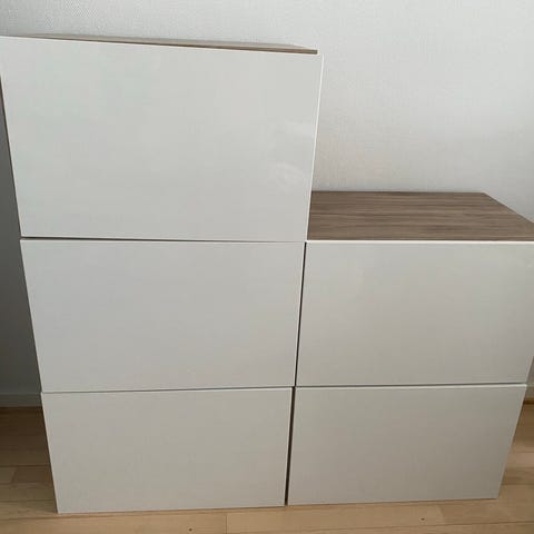 Overskab og bestå sort/brun stel med to hvide låger og 2 hylder i hvert overskab.