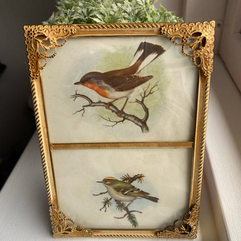 Dobbelt billedramme af metal med små blade.
