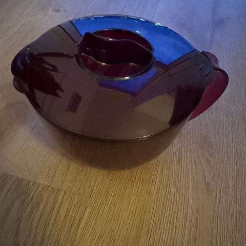 Med lidt brugsspor på den ene side af låget ellers i pæn stand.