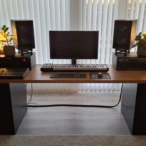 Bordet er i tre etager og med to rum, hvor man kan have sit udstyr. Rulleskuffen nederst er velegnet til midi keyboard, og den øverste etage er velegnet til monitors og skærm, men man føler sig selvfølgelig bare kreativ og indretter bordet på den måde, der passer til ens egne behov.