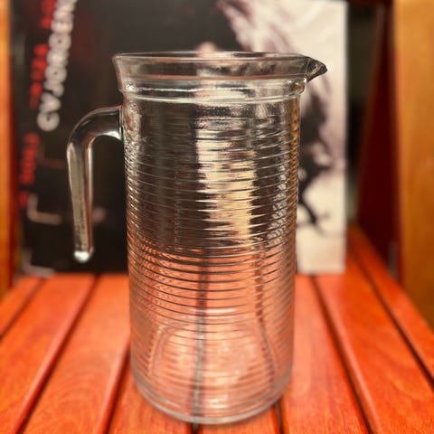 Da den er håndlavet, er der to små ubetydelige luftbobler bagest på kanden, ingen skår eller afslag. Super flot til vand, mælk, saft eller fex sangria.