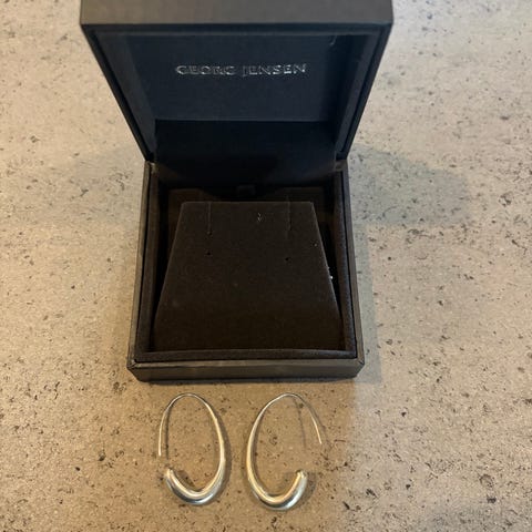Smukke hoops øreringe fra Georg Jensen med sten. Modellen er udgået. De ligger I original emballage. Desværre får jeg ikke brugt dem.