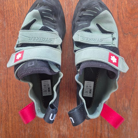 Ocun Striker klatresko str. 43, perfekt til nybegynderen indenfor klatring, lugter ikke, de har lidt brugsspor, men de fejler ikke noget og det er udelukkende kosmetisk. Prisen er til forhandlingen og jeg kan godt sende.