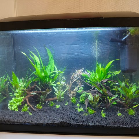 Sælges med 2 fisk og måske 3 rejer og planter og udsmykning ( find neo / skib / ubåd / )