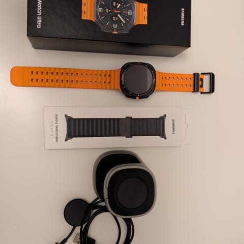 Jeg sælger dette Samsung Galaxy Watch Ultra, da jeg har købt en iPhone og dermed hellere vil have et Apple Watch. Uret er næsten ikke blevet brugt maks 2 uger, og alt virker som den skal. Uret er købt den 25 maj 2025. Skriv for yderligere spørgsmål :)