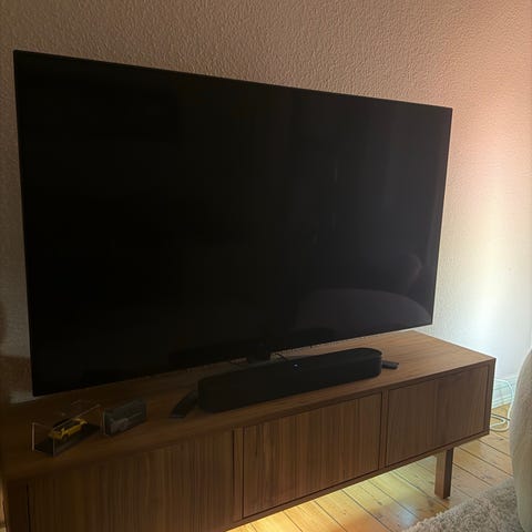 Når tv'et er slukket kan man se nogle spor på nederste venstre side. Men det ses ikke når fjernsynet er tændt og har ingen betydning. Ellers super fint. Med magic remote. Uden tv stand.