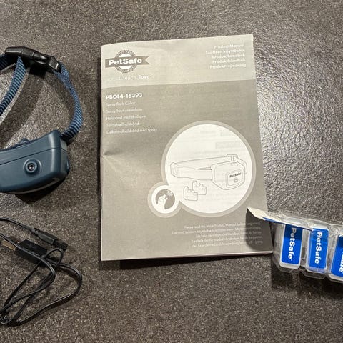 Har brugt dette halsbånd meget få gange, for det virket så vores hund igen kunne være alene hjemme. Koster 499kr for ny.
