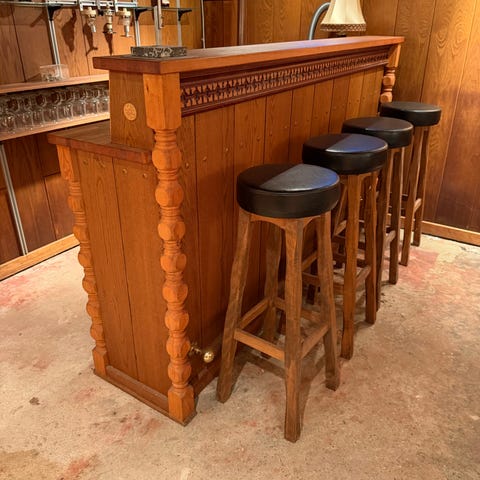 Vintage bar med fem barstole