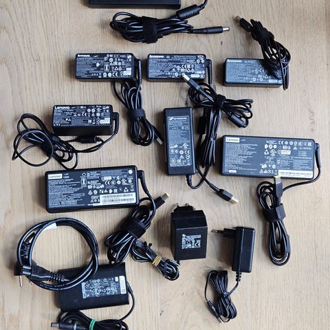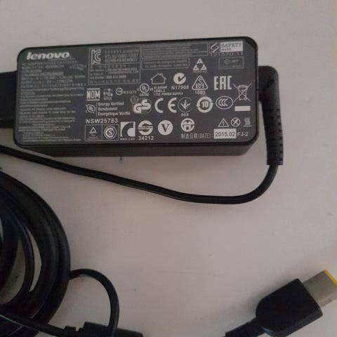 Har det gule rektangulære DC-stik (typisk Lenovo “slim tip” – se foto), så den passer til mange Lenovo-laptops og docking-løsninger, der bruger denne type stik.