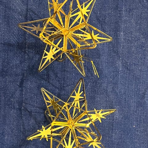 .............. 2 flotte julestjerner til at hænge i vinduet i december måned. Stjernerne er ca. 55 -60 cm i diameter.