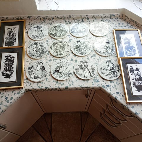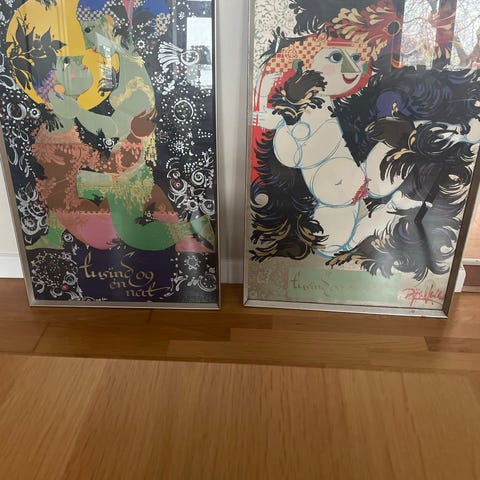 Fire store plakater indrammede i glas med guldramme.