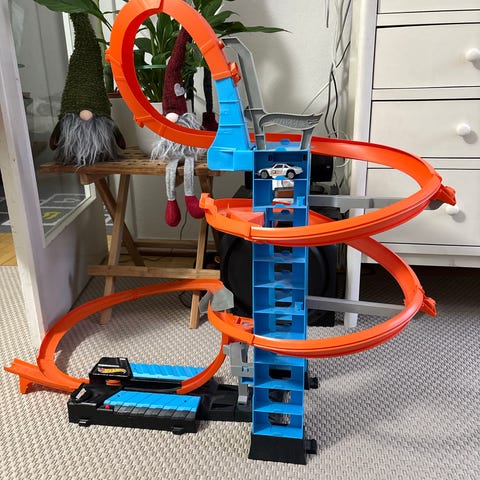 Hotwheels bilbane med elektronisk motor (bruger batterier) så bilerne selv køre rundt i loope via motoren der sender dem afsted i fuld fart. Super sjovt legetøj 🙂