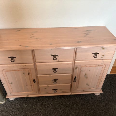 Gammel skænk med udskæringer og 2 skuffer