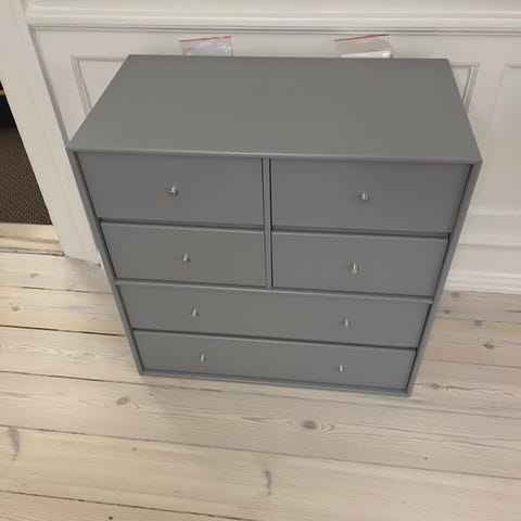 Montana 7125 skuffemodul i flot let lyserød farve og med messing greb