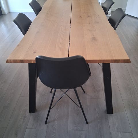 Planke spisebord med 6 stole