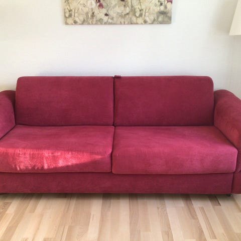 Virkeligt fin sovesofa fra Lauridsens Møbler. sofaen er i virkeligt god stand da jeg kun har haft den et par måneder. Dog gik der noget galt under leveringen (se sidste billede) men det kan overhovedet ikke mærkes når man ligger i den. Også grunden til den sælges lidt billigere. Jeg har givet 8.500 for sofaen, men den sælges for 5000. Den er let at transportere da den er samlet i moduler 😁 Jeg har også givet den beskyttelse to gange, så væske og pletter ryger direkte af igen :)