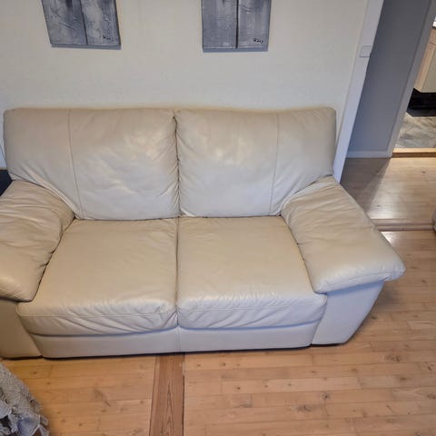 Lækker 3 pers. hvid skindsofa med chasselon og flytbare nakkestøtter