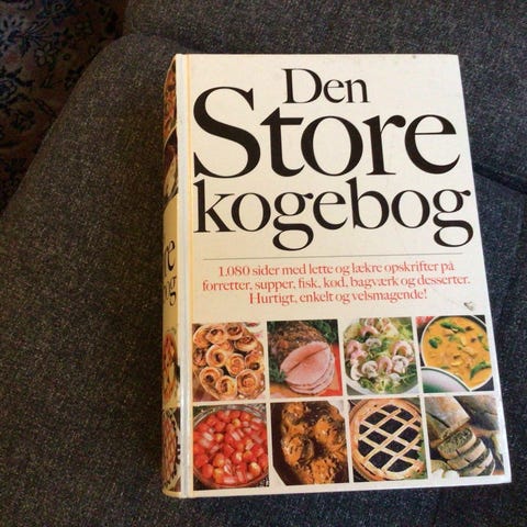 Den Store Kogebog kogebog indeholder 1080 sider med kødretter, supper, fisk, brød, hovedretter og desserter. Bogen tilbyder opskrifter til hurtig, enkel og velsmagende madlavning.