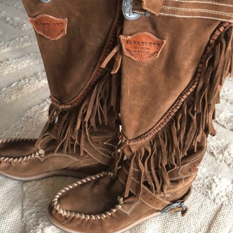 Støvler, har været ganske forsigtigt ude én enkelt gang, hvilket også ses på sålen.