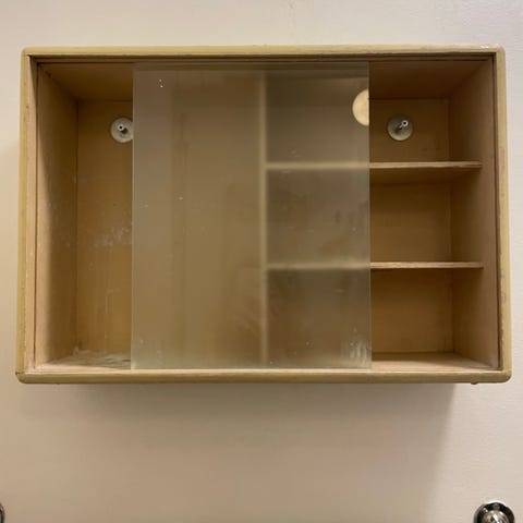Retro vægskab jalousilåge, vintage badskab 60 cm bredt, skab i fyrretræ