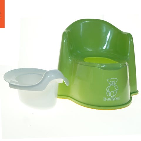 BabyBjörn Potte i plastik med aftagelig indsats. Designet til små børn for nem brug og rengøring. Farve: Grøn med hvid indsats.