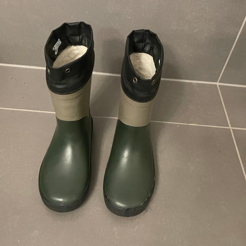 Lækker varm termogummistøvle. Mærket Wheat. Kan bruges som vinterstøvler. Det er primært inde i skoen at man kan se på foret at støvlen er brugt, udenpå kan man næsten ikke se det.