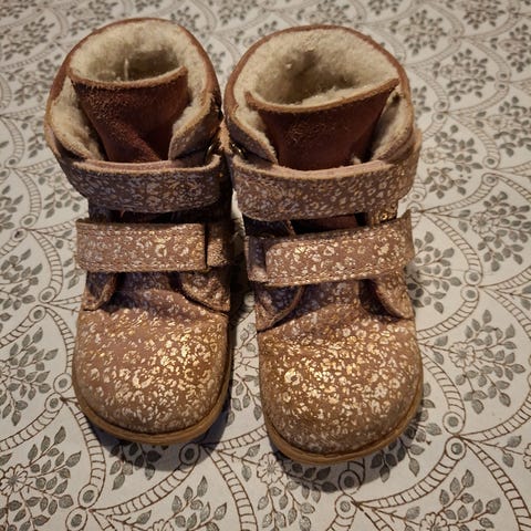 Bisgaard børnestøvler i størrelse 24 til pige. Støvlerne har en kombination af farver med primært rosa nuancer og brune detaljer. De er foret med blødt materiale indvendigt for varme og komfort. Ydersålen er robust med godt mønster for greb og stabilitet.