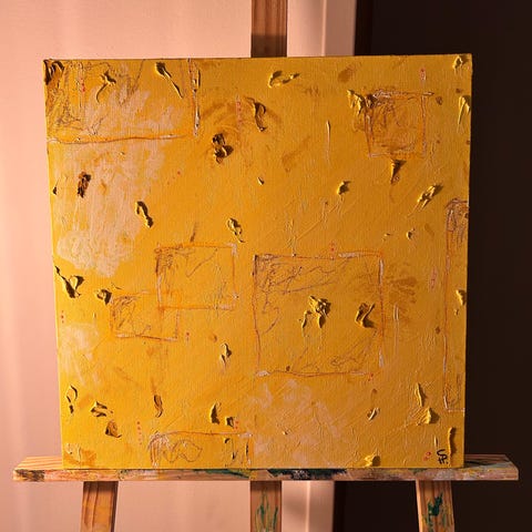 Grøn Drøm - Abstrakt maleri med grønne farvetoner. Maleriet har en kompleks tekstur og mønstre, der skaber et levende og dynamisk udtryk. Velegnet til dekorative formål i forskellige rum.
