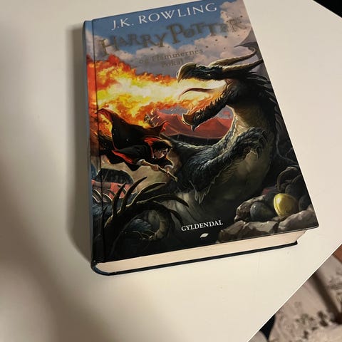 J.K. Rowling Harry Potter bog med illustrationer på forsiden og bagsiden. Bogen er en hardcover-udgave.