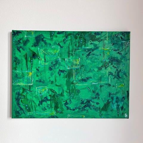 Gul Drøm - Abstrakt maleri med dominerende gul farve. Maleriet har en tekstureret overflade med forskellige nuancer og strukturer. Velegnet til dekorative formål i hjem eller kontor.