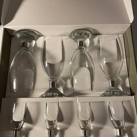 Vi har 8 stk. Erik Bagger Ølglas, 6 stk. Rødvinsglas og 5 stk. Vandglas.