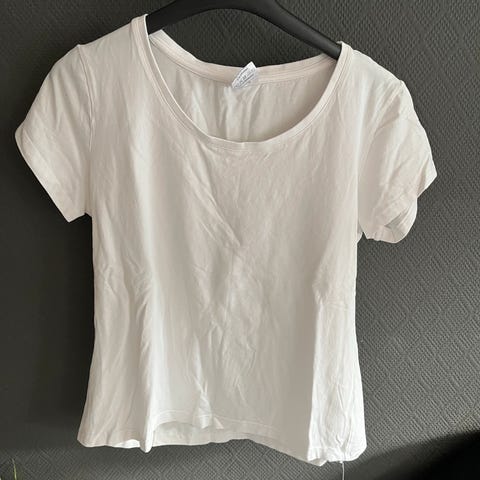 T-shirt, shamp, str. 38, orange, God men brugt, fin t.shirt i elastisk stof. Str. M. V.hals med lille fin påsyet hvid trekant. I fin og intakt stand. Fra ikke ryger hjem. Afhentet eller plus 58 kr. til forpakning og forsendelse med tracking. Sender straks ved betaling og så er varen forventeligt fremme ca. 1-3 dage senere med tracking.