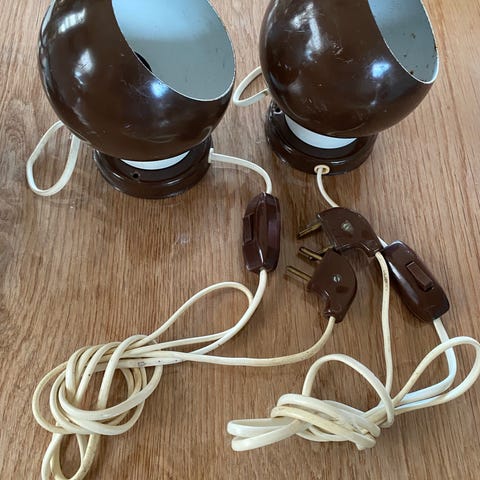 Vintage væg lampe 2 stk. Er i pæn stand er selvfølgelig ikke som nye. De virker fint. Pæne ledninger med tænd og sluk. 200 kr per stk eller begge for 300 kr