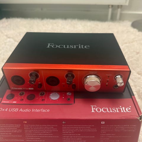 Focusrite Scarlett Solo lydinterface med XLR- og jackindgange, gain-kontrol, monitor- og direkte monitor-knap.