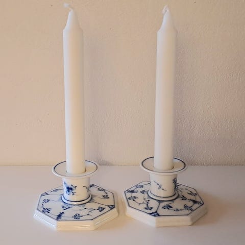 Musselmalet Helblonde lysestage Porcelæn