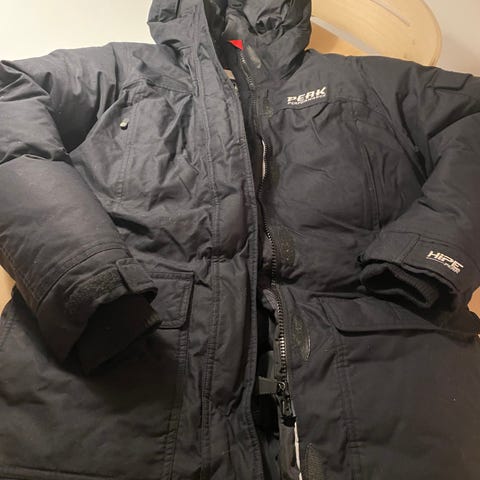 Jakken er dejlig varm. Har brugt den et par gange på skiferie. Den har enkelte brugsspor, men det er ikke meget. Ellers fejler den absolut ingenting.