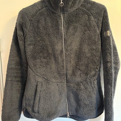 Horze langærmet trøje i sort farve, størrelse S. Trøjen har en kort lynlås foran og er designet til kvinder. Materialet er ikke specificeret, men trøjen har detaljer med mesh på ærmerne.