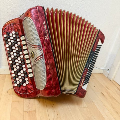 Harmonikaen er i yderst fin stand, bælgen er tæt og alt virker