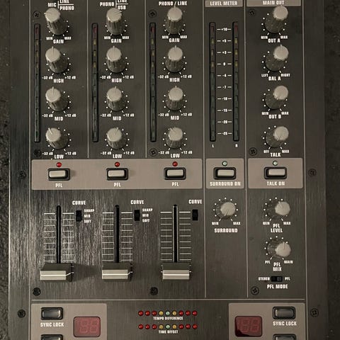 Lækker 3-kanals DJ mixer med MIC, 3x LINE/PHONO input 2 outputs og FX-Send/Return.