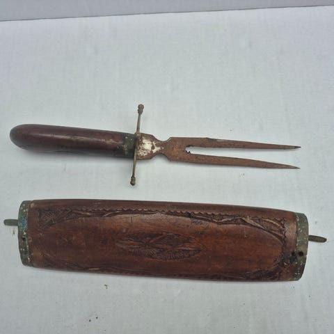 SOLGT. Ambrocius Sardin-gaffel i sølv og ben. Skaftet er i sølv og laffet er i ben. Samlet længde 15,2 cm og skaftet er 8,6 cm. Gaflen er i pæn stand, med almindelig brugsspor.