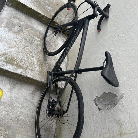 Specialized Racer cykel . Cyklen har en let ramme, drop-stryr og Carbon forgaffel. Alt virker som det skal og den har altid stået i aflåst cykelkælder. Desværre er har cyklen mistet luften på bagdækket. Der medfølger aftagelig bagskærm og aftagelige cykellygter, nogle gode lygter.