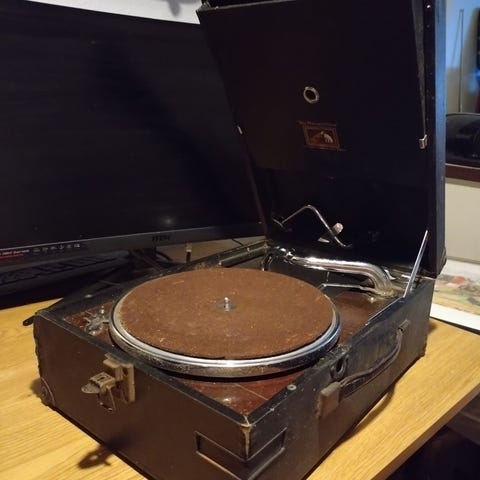 Utrolig smuk “His Masters Voice” vintage grammofon der primært er blevet brugt til “pynt”.
