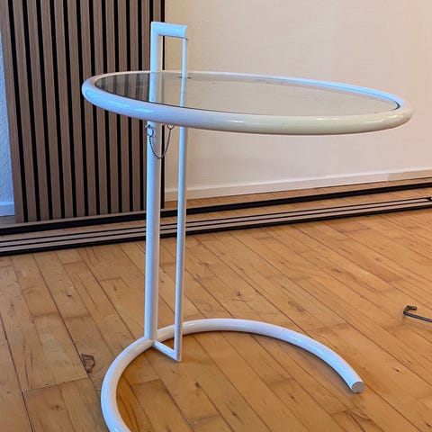 Adjustable Table E 1027 er et sidebord designet af Eileen Gray i 1927 og produceret af ClassiCon. Fremstillet af en justerbar base i pulverlakerede stålrør i sort eller krom. Bordpladen fås i flere designs.