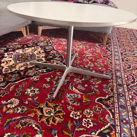 Elegant og tidløst sofabord designet af Arne Jacobsen i 1968, i samarbejde med Piet Hein.