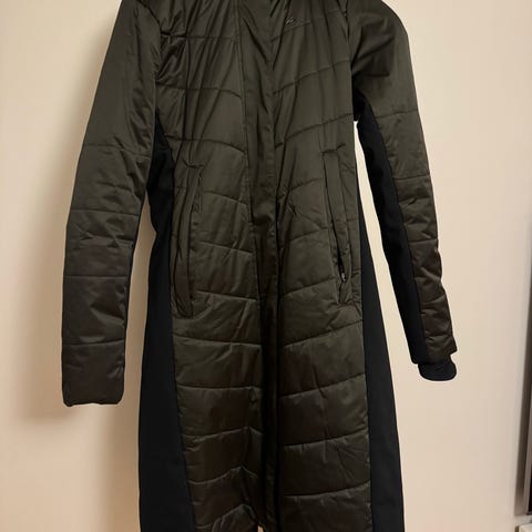 Jakken er i pæn stand - dog er der sat en clips i lynlås til at trække i - selve lynlåsen er i orden.
