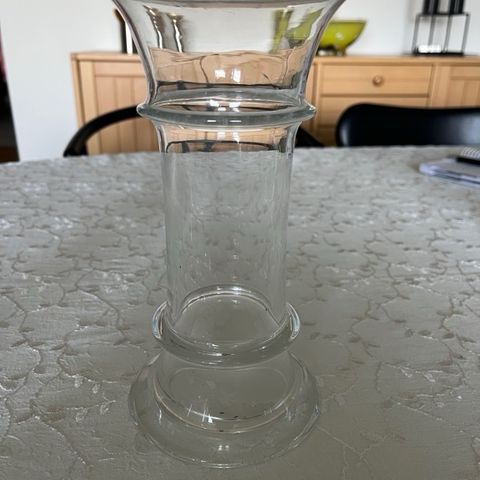 Glasvase i blå farve. Fremstillet i glas med en rund åbning og en bred kant. Velegnet som dekoration eller til blomsterarrangementer.
