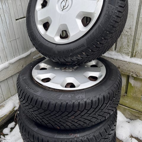 Sæt af 4 vinterdæk med fælge sælges, da bilen (Opel Meriva) skal skrottes, og de derfor ikke bliver brugt alligevel.