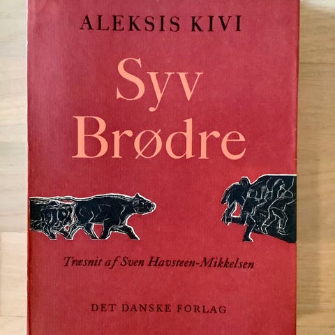 omslagets farver). En af den undervurderede finske litteraturs allerstørste romaner. En humoristisk fortælling i et rigt og malende sprog om syv ustyrlige brødres ekscesser i den finske udørk. Smukt eksemplar. Med Træsnit af Sven Havsteen-Mikkelsen. Oversat af Kjeld Elfelt. Digtene er oversat af Frank Jæger.